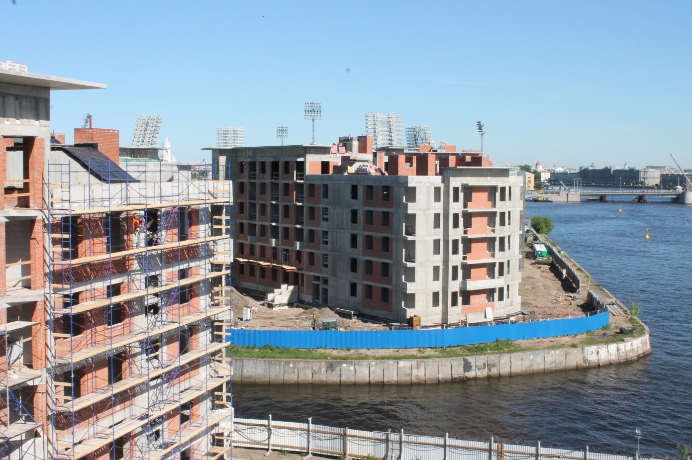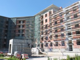 В ближайшее время запланировано утепление фасадов для последующей облицовки натуральным камнем (известняком и гранитом). Далее застройщик начнет устанавливать витражи и окна и благоустраивать придомовую территорию.