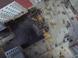 Сейчас парковка находится в стадии возведения монолитных колонн и стен. Сразу за стенами начнется строительство опалубки перекрытия. Объект уже завершен на треть.