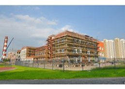 В третьей очереди «Бутово» возводятся стены и монтируются фасадные панели школы. Строители утепляют все этажи, производят монтаж вентиляции и устанавливают окна на первом и втором этажах.